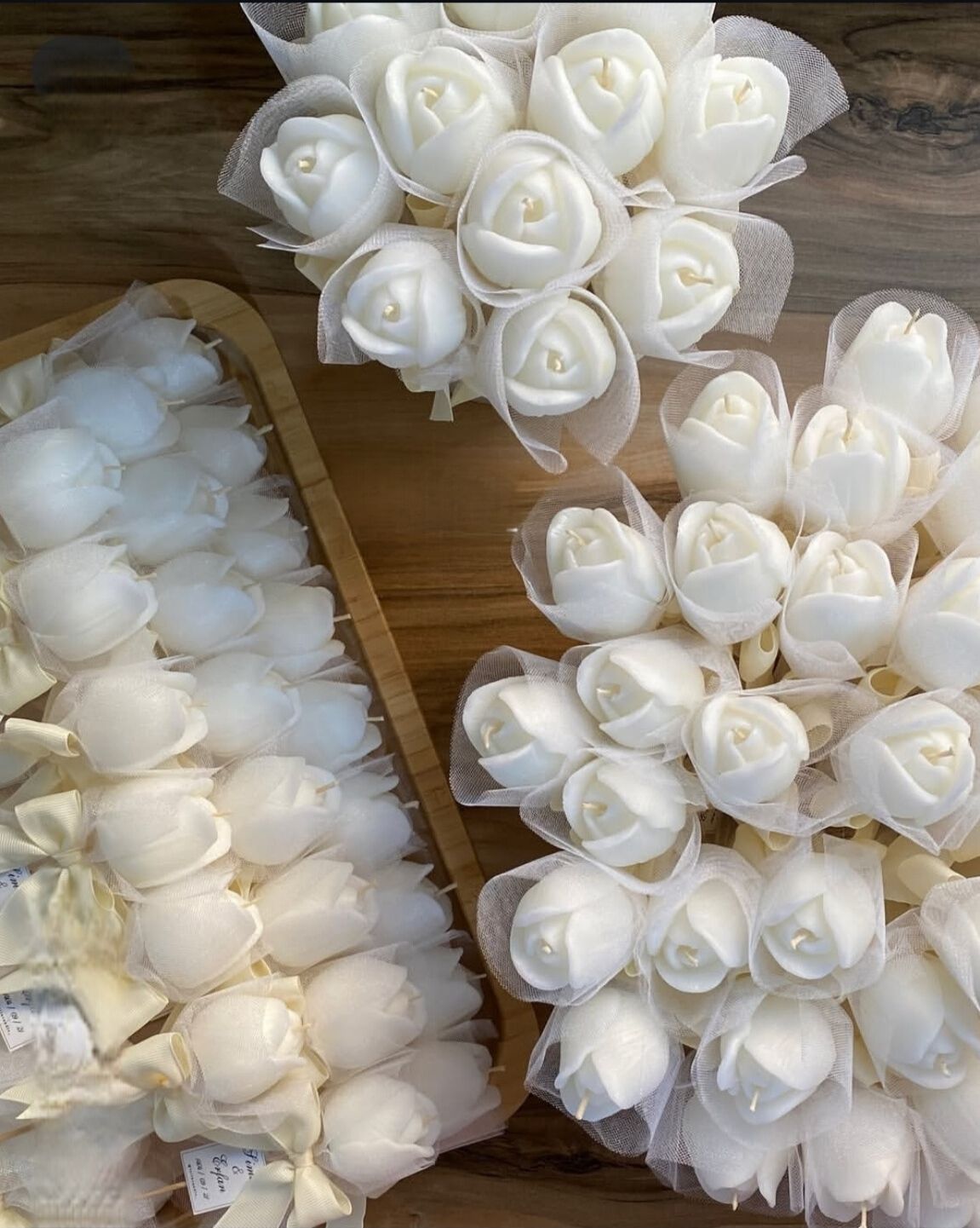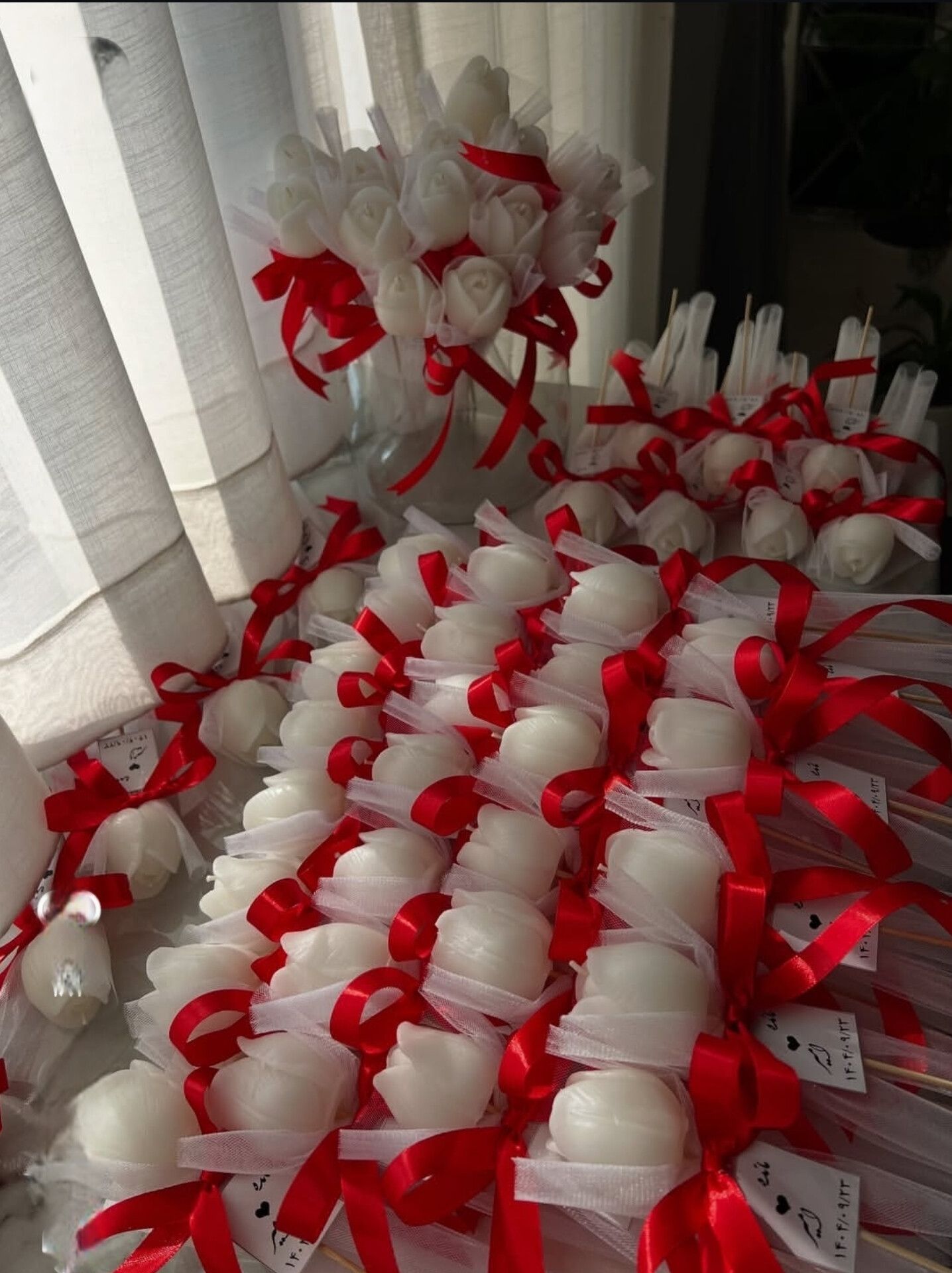 مشخصات اصلیرنگ / قرمز / سفید / کرم / گلبهی / سبزمدل / ساده / با تور / با سیخ چوبی و پاپیونمشخصات فرعیوزن42 گرمارتفاع5 سانتمناسب برایگیفت و هدیه